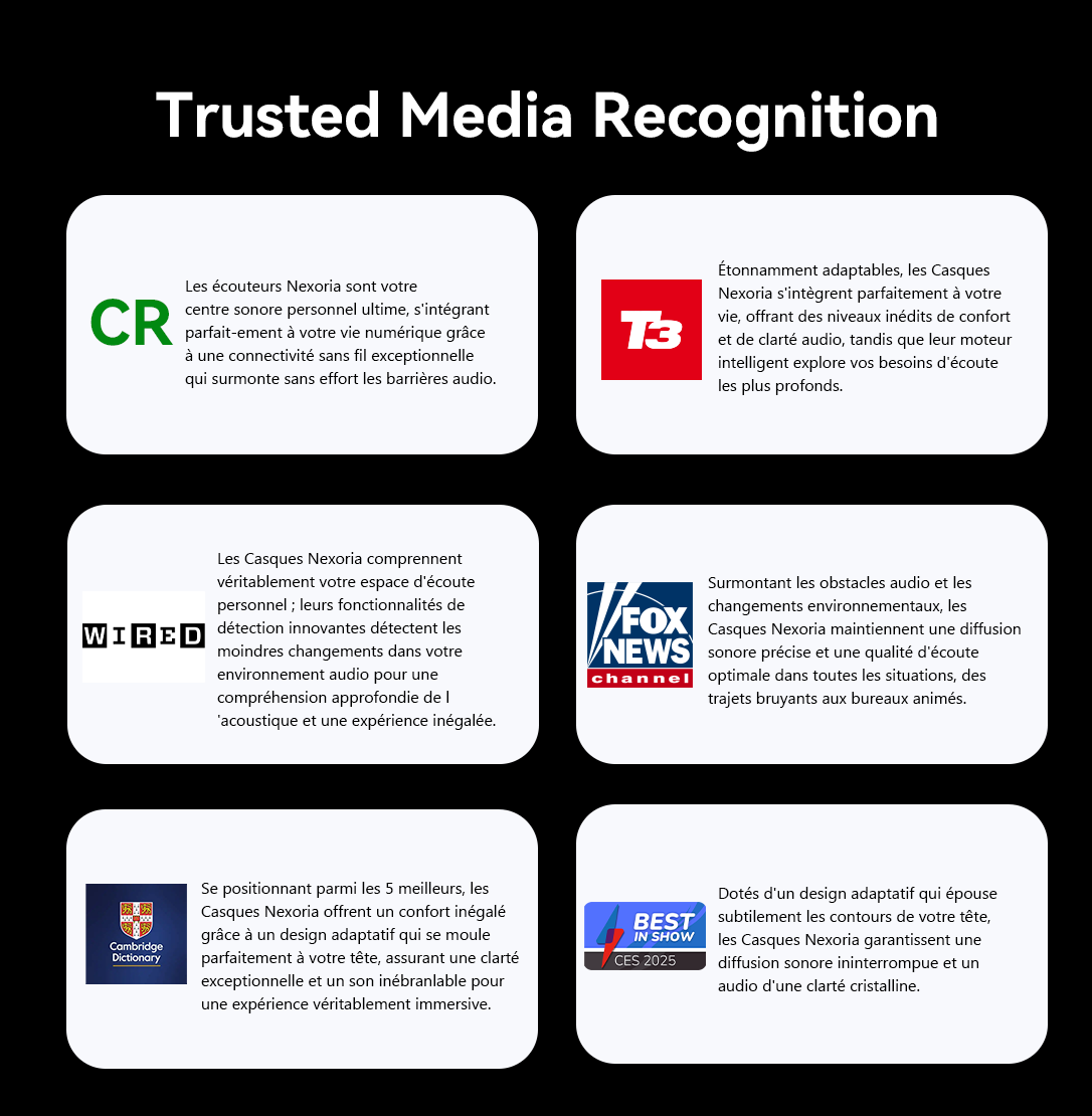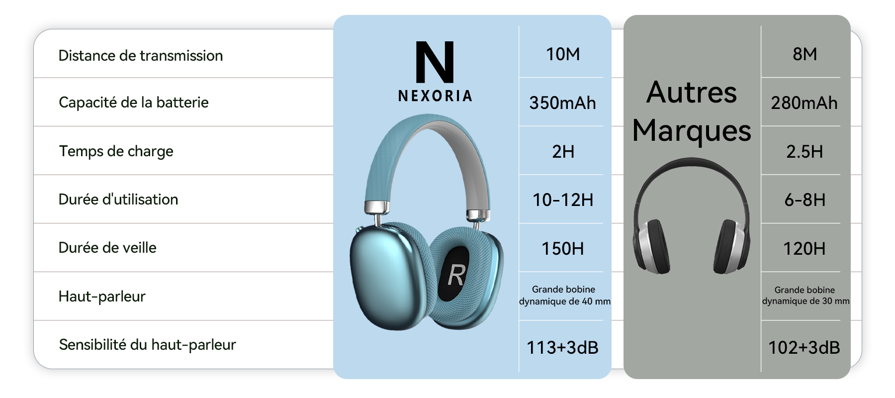 Fatigué des casques qui pincent et serrent vos oreilles jusqu'à ce qu'elles fassent mal ? Redoutez-vous de retirer votre casque pour être accueilli par des lobes d'oreilles lancinants ? Les casques Nexoria sont méticuleusement conçus avec un design ergonomique avancé, répondant spécifiquement aux points de douleur liés à une utilisation prolongée, afin que vous puissiez profiter de votre audio pendant des heures sans douleur.