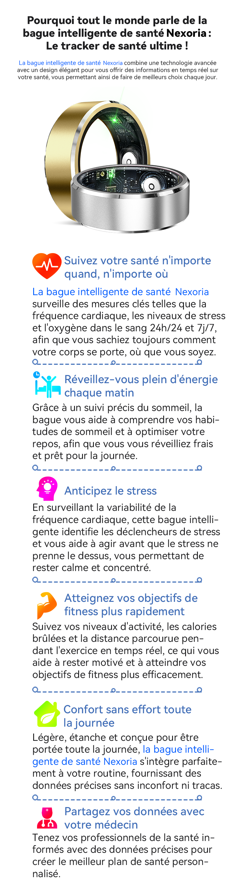 Nexoria Smart Ring : Votre moniteur de santé 24/7, coach sportif pro, assistant du quotidien, l'alliance parfaite de la mode et de la technologie.