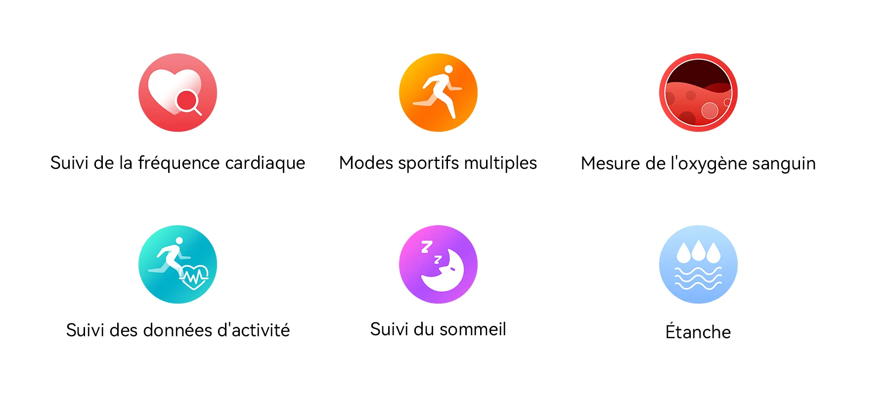 - Suivi de Santé Complet-Bénéficiez d'une surveillance ininterrompue de votre fréquence cardiaque, de votre oxygénation sanguine et de votre sommeil 24h/24 et 7j/7, vous offrant des informations précieuses pour votre bien-être optimal.